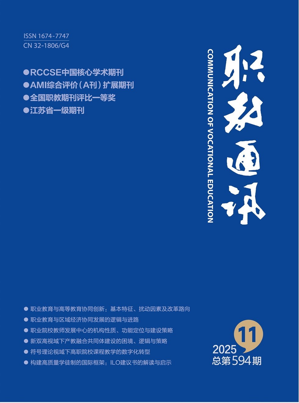 《职教通讯》是江苏省教育厅主管、江苏理工学院主办的职业教育综合性期刊。它是中国职教界重要的主流媒体。创刊来,它始终坚持“宣传职教、研究职教,服务职教,引领职教”的办刊宗旨,逐步形成了切合时代脉搏,贴近职教实际,聚焦职教热点与难点,关注职教改革与发展,融理论性、实践性、综合性于一体的办刊特色。它是从事职教理论研究、教育教学和管理人员等发表成果的重要平台,是职教研究与教研机构、职业(技工)院校、社区学院(校)、成人教育与培训机构及其管理部门等人员开展工作的重要参考读物。
