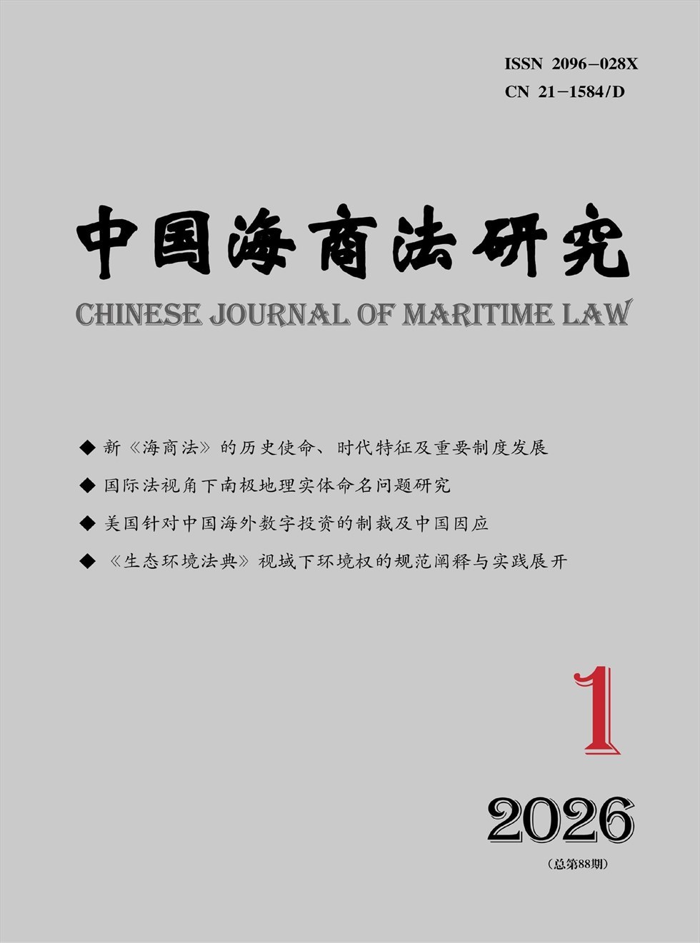 《中国海商法研究》由中国国际贸易促进委员会主管、中国海商法协会和大连海事大学主办。本刊前身《中国海商法年刊》创刊于1990年,2009年5月,经新闻出版主管部门批准改为季刊出版发行,是我国目前唯一公开出版发行的海商法和海洋法等涉海领域法律问题研究的学术期刊。主编由《中华人民共和国海商法》主要起草人之一、著名海商法学专家司玉琢教授担任。本刊的办刊宗旨是"传播海商法最新研究成果,探讨海商法实际问题,报道立法最新进展,反映海商法最新动态"。本刊用稿实行"双向匿名专家评审"。对有争议的稿件,聘请多位专家把关,以把握期刊的政治性、科学性和创新性。《中国海商法研究》是中国海商法领域公认的权威性期刊,在办刊过程中,编辑部始终坚持质量第一的原则,严格遵守学术规范,致力于出精品、创品牌,为中国海商法研究与实践提供了更为宽广的平台。