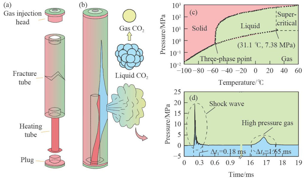 摘要:超临界 CO2 相变破岩是冲击波与高压气体协同作用下的动态破坏过程。为深入探究多孔同步激发与地应力耦合条件下的超临界 CO2 相变破岩机制,针对 CO2 现场破岩实际工况,基于薄壁圆筒理论解析了单孔初始破岩压力,结合一维爆生气体膨胀理论,构建了地应力作用下多孔冲击波与高压气体联合破岩半径预测模型,并通过现场多孔 CO2 相变破岩试验进行了对比验证。结果表明:当致裂管埋深较浅时,地应力对岩体应力分布的影响较微弱;当单孔压力一致时,致裂孔数量越多,各孔的叠加峰值应力越大;在垂直于测试孔布置方向,各孔的峰值应力均呈U形抛物线分布,两端的致裂孔的叠加应力最大;而在平行于测试孔布置方向,各孔的峰值应力均呈倒U形抛物线分布,中部致裂孔的叠加应力最大。此外,利用声波测试得到的现场多孔冲击下岩体损伤破坏范围呈三维漏斗状,竖向损伤破坏范围在 5.05~5.73m 之间,平面损伤破坏范围在 4.3~5.6m 之间,其中平面损伤破坏范围测试值与理论计算值的相对误差在 5.0%~18.7% 之间,计算误差多来自各致裂孔叠加应力的不均匀性。进一步分析可知:超临界 CO2 相变破岩半径随致裂孔叠加应力呈半抛物线式增长,随致裂孔深度呈对数式增长;当岩体抗压强度增大时,岩石断裂韧度近线性增长,对应破岩半径近线性下降。研究成果可为多孔超临界 CO2 相变破岩工程参数优化提供定量化设计依据。