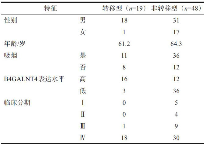 [摘要]目的通过生物信息学技术分析筛选转移和非转移型头颈鳞状细胞癌(HNSCC)组织中基因的表达规律,进一步筛选转移相关关键分子。方法从癌症基因组图谱数据集中选取了具有明确信息的19例HNSCC转移型和48例HNSCC非转移型患者的相关数据,通过生物信息学技术分析筛选在转移、非转移型HNSCC中上调和下调的差异表达基因,并对其进行聚类分析、京都基因与基因组百科全书分析和基因本体论分析。其中 β -1,4-N-乙酰半乳糖胺基转移酶4(B4GALNT4)因其“调整后的 P 值”最小从而被选为关键基因,并通过逆转录及定量反转录聚合酶链式反应、蛋白免疫印迹实验对其进行细胞水平验证。结果与非转移型HNSCC组织相比,转移型中有76个基因显著下调,99个基因显著上调,其中B4GALNT4基因表达上调最显著。细胞水平检测发现,与转移能力弱的UM-2细胞相比,转移能力强的UM-1细胞中B4GALNT4的mRNA水平和蛋白表达水平均显著增加(P<0.05) ;与UM-2细胞相比,UM-1细胞中蛋白O-糖基化的水平也显著增加( P< 0.05)。结论B4GALNT4在转移型HNSCC组织和细胞中均表达上调,其表达与蛋白质糖基化的水平呈正相关关系,B4GALNT4有望成为一个肿瘤转移防治新靶点。[关键词]头颈部鳞状细胞癌;转移; β -1,4-N-乙酰半乳糖胺基转移酶4;糖基化[中图分类号]R739.8[文献标志码]A[doi] 10.7518/gjkq.2026211
