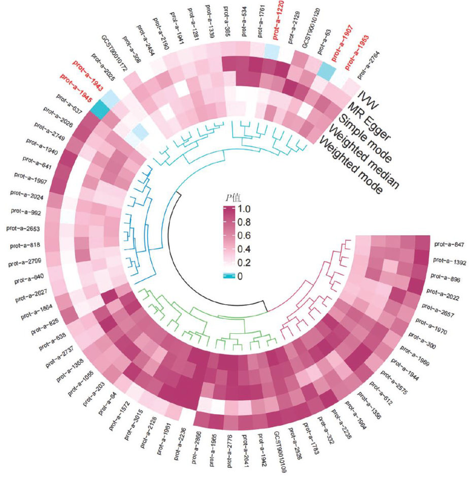 [摘要]目的采用孟德尔随机化(MR)法研究特定线粒体功能与口腔扁平苔藓(OLP)存在之间的因果关系,探讨线粒体功能障碍对OLP的影响,为深入了解OLP的发病机制和寻找潜在的治疗靶点提供参考。方法本研究的数据来源于开放全基因组关联研究(IEU)和芬兰基因组研究计划(FINNGEN)数据库。从IEU数据库中筛选出69种与线粒体功能相关的遗传变异位点,从FINNGEN数据库中获得了包含587例病例和411594例对照的OLP数据。采用R语言4.3.2进行MR分析,采用逆方差加权(IVW)、MREgger回归法(MR Egger)和加权中位数法,评估线粒体变异与OLP之间的因果关系。工具变量的选择设置了 P<5e-5 的统计学阈值,消除连锁不平衡的标准包括设置 r2>0.001 和去除 1000kb 范围内的单核苷酸多态性(SNP);同时还进行了异质性检验和定向水平多效性检验。结果MR分析发现特定线粒体功能与OLP之间的关联存在统计学意义。比值比(OR)小于1时,提示对OLP具有保护作用。谷氧还蛋白-2(Grx2)(IVW, OR=0.768 , P=0.036 )和线粒体肽蛋氨酸亚砜还原酶(MPMSR)(IVW, OR=0.680 , P=0.044 )均小于1;相反,丙二酰辅酶A脱羧酶(MCD)(IVW, OR=1.591 ,P=0.022 )、39S核糖体蛋白L34(MRPL34)(IVW, OR=1.826 , P=0.034 )和核糖体再循环因子(RRF)(IVW,OR .=1.498 , P=0.0049 )的OR值大于1,提示这些因素是OLP的危险因素。进一步的反向验证强调了MCD与OLP的相关性具有统计学意义(IVW, OR=1.134 , P=0.045 ),表明OLP也是这种线粒体功能的危险因素。结论本研究基于MR发现特定线粒体功能与OLP之间的因果关联存在统计学意义,其中Grx2和MPMSR等与氧化还原稳态相关的线粒体蛋白显示出对OLP的保护作用,而MCD、MRPL34和RRF等则可能增加OLP的患病风险。
