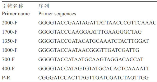 摘要:转录因子StWRKY70参与植物抗病防御反应过程,可以提高马铃薯早疫病抗性。为探究马铃薯 StWRKY70基因启动子功能,拟进一步通过PCR方法克隆 StWRKY70基因启动子,利用在线软件预测该启动子的顺式作用元件,并分析调控元件分布特点;构建启动子5端缺失表达载体(pGreenII0800-StWRKY70pr:.LUC)并瞬时转化烟草叶片,通过观察报告基因LUC情况,明确启动子的活性区域。结果表明,该启动子序列长 2000bp ,含有脱水响应元件MYB、干旱响应元件AP2/ERF、高温响应元件HSF等多种顺式元件;LUC荧光强度分析结果表明,随着StWRKY70基因启动子5端缺失不同片段的长度增加,LUC荧光强度逐渐增强,明确了StWRKY70基因启动子的核心区域为400~700bp 。综上所述,StWRKY70基因启动子的核心区域及多种逆境响应元件可能通过调控基因转录效率参与马铃薯早疫病抗性应答过程,为解析StWRKY70在植物抗病中的作用机制提供一定的理论支持。