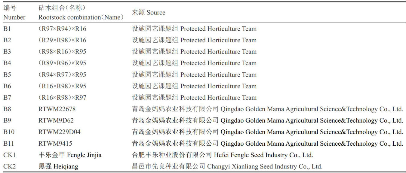 摘要:为筛选出适宜巴彦淖尔地区西瓜主栽品种嫁接使用的南瓜砧木,以11个南瓜砧木组合(B1\~B11)及2个商业南瓜砧木(CK1、CK2)为试验材料,以当地主栽西瓜品种绿宝沙漠1号为接穗,研究不同南瓜砧木嫁接对西瓜嫁接苗成活率、定植成活率、开花坐果节位、果实品质和产量的影响,并利用主成分分析法对上述指标进行综合评价。结果表明,B1、B5、B8和B10与接穗绿宝沙漠1号具有较高的亲和性;B2、B3、B4、B5和B8的坐瓜能力强于对照;以B2、B5、B8、B10和B4为砧木的西瓜产量均高于商业对照。除B8外,其余砧木嫁接不会显著改变西瓜果形,除 B4的边部可溶性固形物含量显著低于商业对照外,其余参试砧木与对照均无显著差异。通过主成分分析最终筛选出2份适合巴彦淖尔地区嫁接西瓜使用的优质南瓜砧木组合B2和B10,较商业对照砧木CK1和CK2分别增产24.92%.29.20% 和 12.75%.16.61% ,可在生产上推广应用。