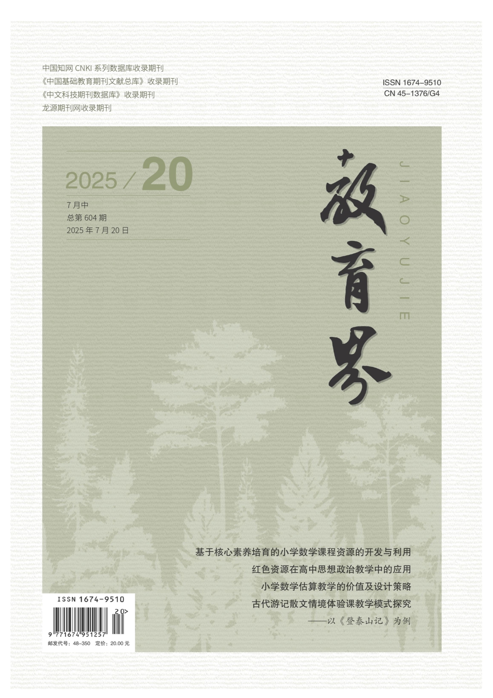 【摘要】为全面落实立德树人的教育理念,美术课堂教学应从教学目标、内容、方法等多维度构建学科育人的实施策略。作为一门综合性学科,美术学科除了具有传播美术知识的功能,还在提升审美能力、培养创新思维等方面发挥作用。文章探讨基于立德树人理念的小学美术学科育人路径,提出思维育人、审美育人、史料育人、活动育人的教学策略,旨在帮助学生陶冶情操、提升道德修养、启迪心灵,使其成为德智体美劳全面发展的新时代人才。