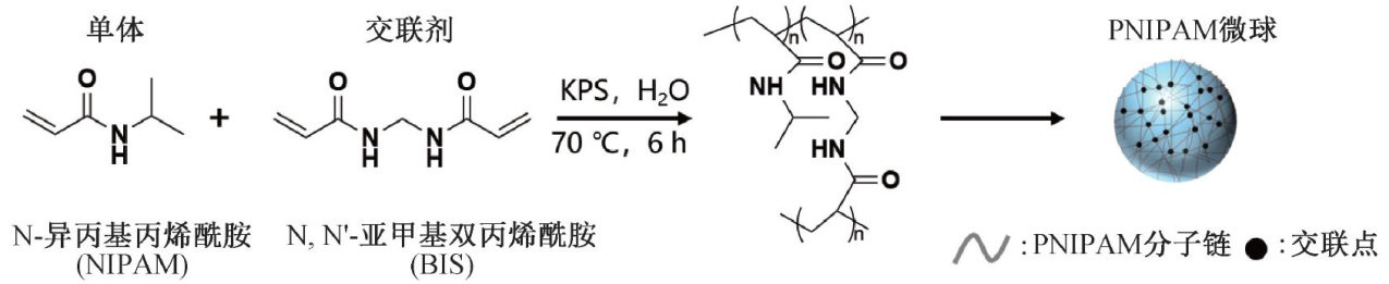 摘要:针对传统有皂乳液聚合制备聚N-异丙基丙烯酰胺(PNIPAM)微凝胶过程中表面活性剂残留问题,采用无皂乳液聚合法制备PNIPAM微凝胶,并研究交联剂 N,N′ -亚甲基双丙烯酰胺(BIS)对PNIPAM微凝胶的微观结构、溶胀性能、温度响应特性及热力学行为的影响规律。结果表明:将N-异丙基丙烯酰胺(NIPAM)物质的量浓度固定为 100mmol/L ,BIS物质的量浓度达到 5mmol/L 时,可形成独立、均匀的球状微凝胶;而当BIS物质的量浓度在 1mmol/L 以下时,则形成结构不规则的微凝胶。在BIS物质的量浓度从5mmol/L增加至 15mmol/L 时,PNIPAM微凝胶的水合粒径从 600nm 下降至 459nm 。此外,随着BIS用量增加,微凝胶的溶胀率及其温敏性逐渐降低。研究结果可为PNIPAM微凝胶的设计和功能优化提供参考。