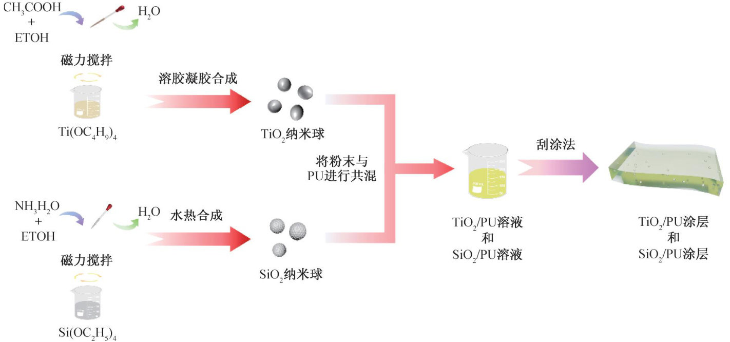 摘要:聚氨基甲酸酯(PU)涂层应用广泛,但其抗紫外性能不足。通过水热法和溶胶凝胶法分别制备了二氧化硅( SiO2 )和二氧化钛( TiO2 )纳米颗粒,然后将这2种纳米颗粒与PU溶液共混,制备了 SiO2–TiO2/PU 复合涂层,并对比分析了共混后复合涂层的光老化性能变化情况。结果表明:采用水热法所制备的 SiO2 纳米颗粒内部无结晶区,采用溶胶凝胶法制备的 TiO2 纳米颗粒经煅烧后形成了规整的晶区结构,其结晶度和晶面间距分别为 98.20% 和 0.35nm 。当 SiO2 与 TiO2 共混比例为 1:1 并且控制PU的质量分数为 20% 时,所制备的 SiO2–TiO2/PU 涂层对紫外线的吸光度和反射率最高,该 SiO2–TiO2/PU 涂层在紫外光照射 30min 后,断裂应力和断裂伸长率分别下降了 32.69% 和 8.98% ,明显低于其他涂层,表现出优异的抗紫外性能。