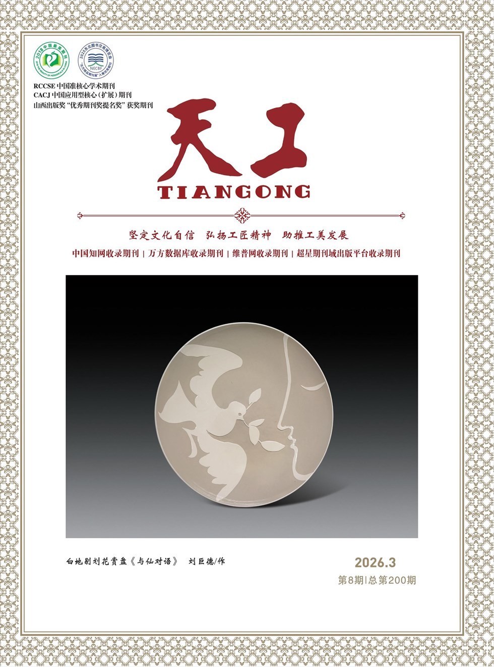 《天工》杂志以传播工艺美术文化为核心,以轻松的笔调讲述工艺美术美的历程。知识性、情感性、可读性并重。儒雅而时尚、明丽而清新、高端而大气是我们追求的风格。