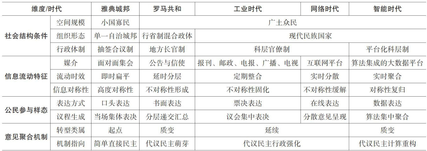 [摘要]作为生产力水平重要标尺的信息流动模式及其对称性,是决定公民参与并建构意见聚合机制的重要变量。雅典城邦的直接民主奠基于小国寡民时代信息的对称性,依赖公民的直接“在场”;在古罗马至工业时代广土众民的社会,因信息传递的迟滞与垄断,直接民主难以实现,只能以间接代议方式妥协维系治理效能。当代信息技术尤其是数字技术的革命,大大促进了社会各阶层各领域的信息流动,改进了公民参与的深度和广度,进而催化了民主形式的迭代。在实践中,移动互联网消解了地理隔阂,智能算法可将公民个人诉求聚合为结构化共识,区块链技术则保障了协商透明性,这一切变化深度改变了政治与公共生活的格局。更重要的是,公民在日常生活中通过各种数字媒介或平台,自觉或不自觉地参与了公共问题的讨论和意见表达,促使政府不得不借助智能技术解析这些数据,以前瞻式回应爆炸式的民意输入,从而提升治理效能,由此型构了“智能民意聚合”。智能民意聚合是信息与智能化时代公意形成的新路径,是政府借助智能技术主动获取公民意见的新通道。在智能民意聚合的运作中,公民参与突破了现行的代议制框架直接介入了政策全周期,“政策黑箱”由此被打破,传统代议民主的“代表垄断”转向了公民与算法的“数据共治”。计算民主是技术驱动下直接民主理念的适应性重构,其本质是公民通过从“象征性参与”到“技术性在场”的范式跃迁,实现既有代议民主的优化,为全过程人民民主理念在智能时代的现实实践提供了一种新的可能性。